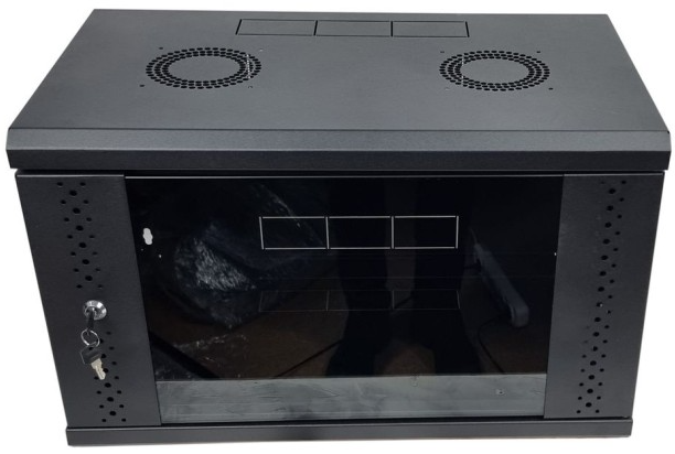 Шафа настінна E-server 6U 600х500х370 (ES-Е650B) — компактна cерверна шафа, призначена для зберігання та захисту активного й пасивного мережевого обладнання. Ідеально підходить для установки в технічних або офісних приміщеннях із обмеженим простором. Має міцний сталевий корпус та двері з загартованого скла, що дозволяє контролювати стан обладнання, не відкриваючи шафу. У верхній кришці шафи