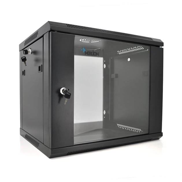 Шафа Merlion 4U, 600*600*279 (Ш*Г*В)мм загартоване скло, чорна, сталь 1,2мм із замком