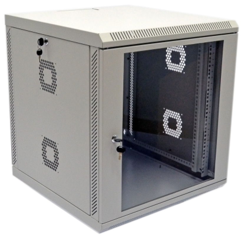 P)— настінна телекомунікаційна шафа формату 19", висотою 12U, з шириною та глибиною 600×600 мм, призначена для використання всередині приміщень. Виготовлена з листової сталі, що забезпечує міцність конструкції й надійне встановлення мережевого обладнання. Передні дверцята оснащені вставкою із загартованого скла для візуального контролю