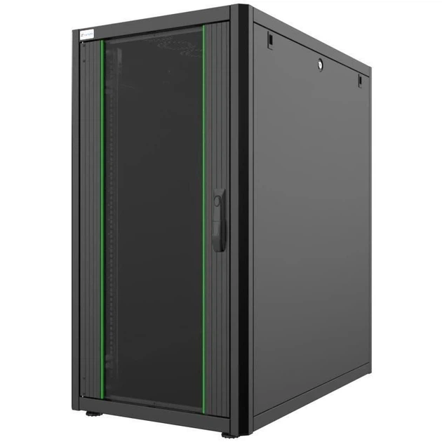 Шафа MIRSAN 19", 26U, GTV, скляні двері, 600x1000 мм, максимально 2000 кг, чорна