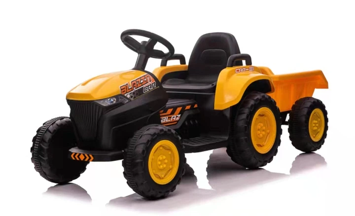 Дитячий електромобіль трактор з причепом Lolly Kids LK X100 з пультом керування і м'яким сидінням жовтий (9609)