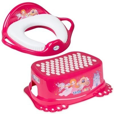 Дитячий комплект м'яка накладка на унітаз + підставка для ніг Принцеса рожевий