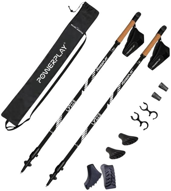 Палиці для скандинавської ходьби PowerPlay 9111 Lykke Black/White 80-135 см (пара) + 2-ві пари чобітків +