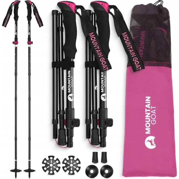 Трекінгові палиці від польського бренду Mountain Goat - це ідеальний супутник у тривалих походах. Вони вирізняються високою ергономічністю, зручністю та надійністю. Піші прогулянки з трекінговими палицями є відмінним способом покращити свою фізичну форму, скинути зайву вагу та збільшити рухливість суглобів! За одну годину активності ви спалюватимете понад 500 ккал, при чому для цього