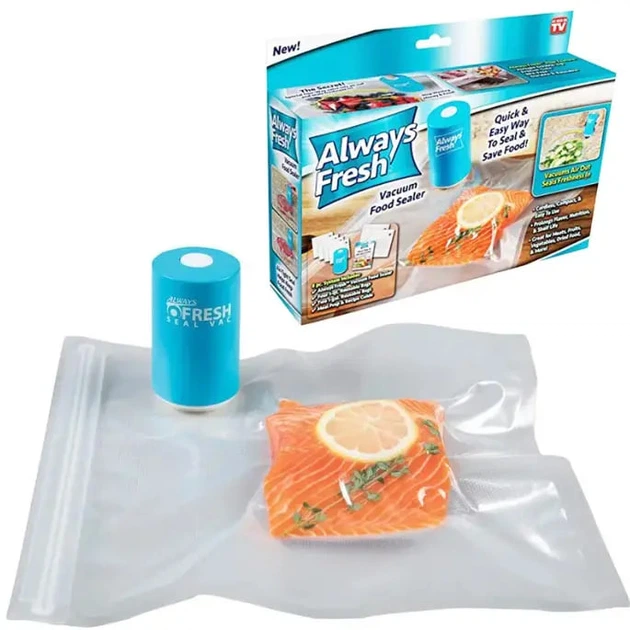 Вакуумний пакувальник ручний для продуктів Vacuum Sealer Always Fresh Вакууматор пакети 6 шт