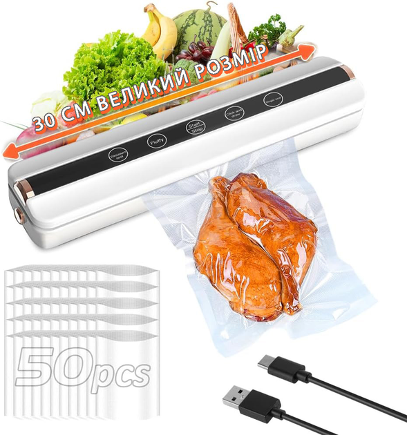 Портативний Вакуматор 30 см Vacuum прилад для вакумування продуктів заряджання від USB Type-C