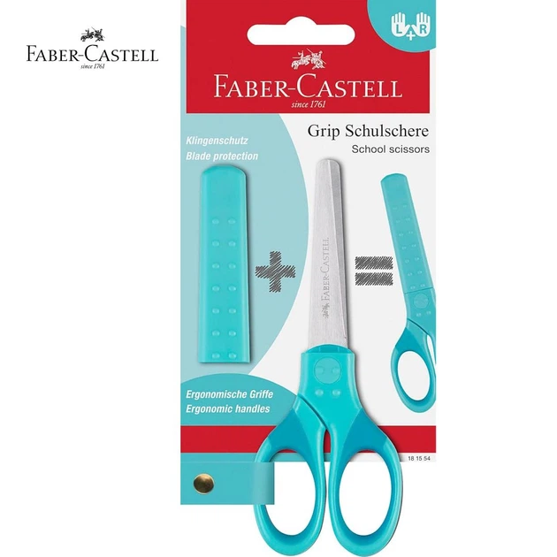 Ножиці дитячі Faber-Castell School Scissors для правшів та шульг, з ковпачком для леза, колір бірюзовий, 181554