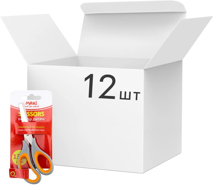 Упаковка ножиць дитячих Maxi 13.5 см Сіро-помаранчеві x 12 шт (MX09420)