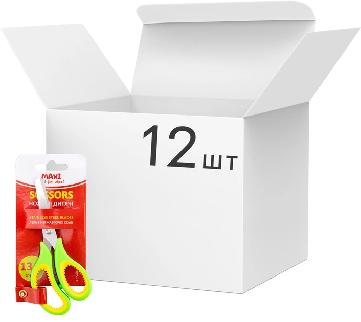 Упаковка ножиць дитячих Maxi 13.5 см Зелено-жовті x 12 шт (MX07420)