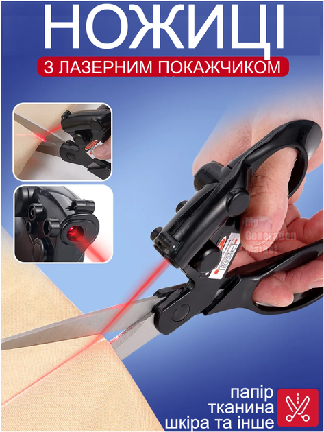 Ножиці канцелярські з лазерним покажчиком для рівного різання тканини паперу картону офісні лазерні кравецькі