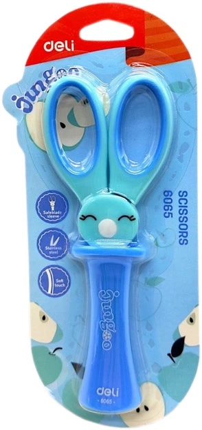 Ножиці дитячі Deli 6065Б Заєць в капелюсi з гумовими вставками Блакитні 13 см (2252510312014)