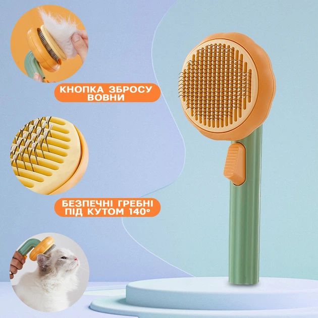 Щітка для вичісування вовни домашніх тварин Shiny Pet з кнопкою скидання ворсу котів та собак
