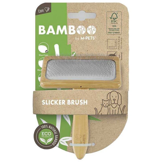 Щітка-пуходерка з ручкою із бамбука для собак та котів M-Pets Bamboo Slicker Brush L (6953182738428)