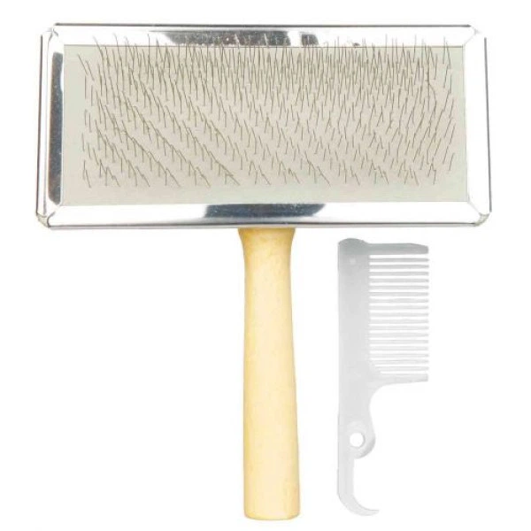 Щітка-пуходерка Trixie з дерев'яною ручкою та пластиковий гребінець, 11х14 см