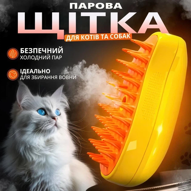 Силіконова парова масажна щітка - гребінець Pet Brush для вичісування шерсті собак і котів, з функцією вологого догляду, аку