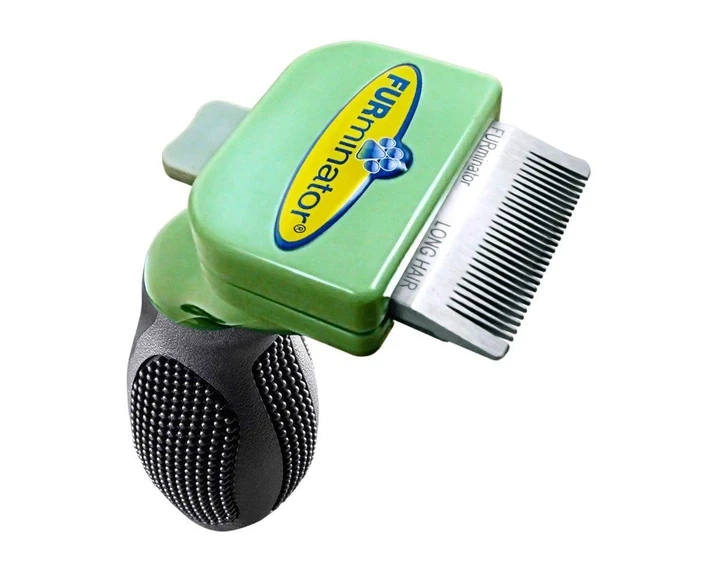 Фурмінатор для догляду за шерстю гребінець для довгошерстих собак та кішок з кнопкою зелений