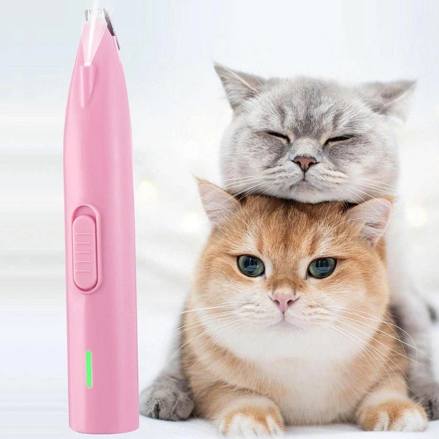 Ультратихій професійний триммер для лап та морд домашніх тварин з вузькою керамічною головкою та USB-зарядкою Рожевий