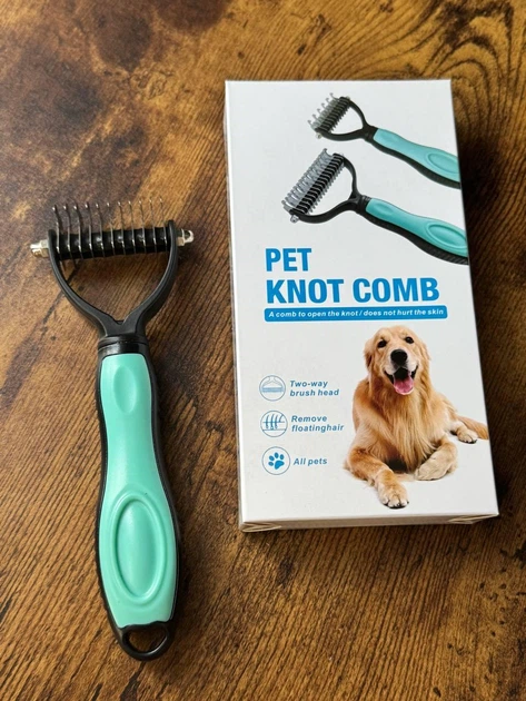 Пухнастики Пуходерка щітка двостороння, без напилення, для догляду за шерстю тварин 10х17 см PL1041