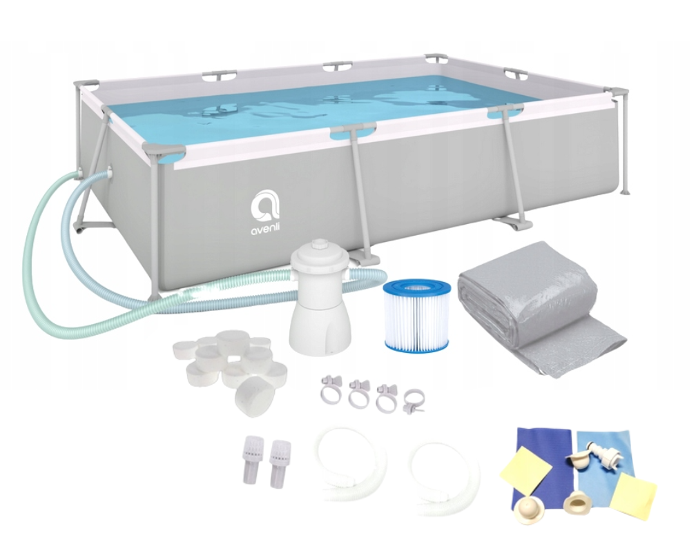 Відчуйте себе у відпустці у власному саду або на терасі. Ваші діти забудуть про нудьгу, а ви розслабитеся у освіжаючій воді після напруженого робочого дня. Місткість: 90% - 4383 л. Продуктивність насоса: 1136 л/год Висота водного порога: 68 см Матеріал:3-шаровий ПВХ Розмір басейну: 305x76 см Рамка: метал НАБІР 16 в 1 МІСТЬ: Басейн 305 см х 76 см Килимок під басейн Накрити мотузкою Фільтр-насос Фільтр насосу Шланги насоса Металевий каркас Комплект для ремонту З'єднувачі металевого каркасу Дозатор хімії для басейну. 10 кубів хімії для басейну (сіль для басейну) Інструкції польською мовою Екрани фільтрів Хомути Зливний клапан з можливістю підключення садового шлангу Ущільнення