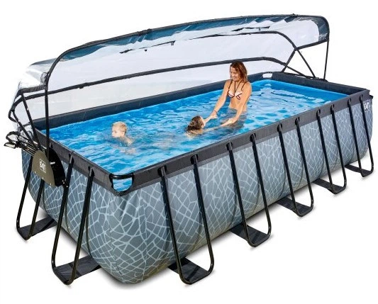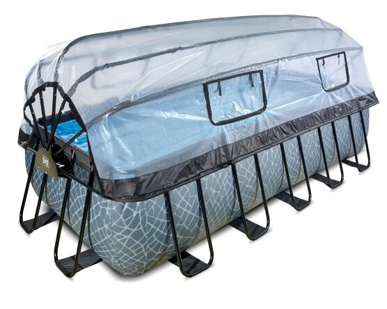 Басейн каркасний прямокутний EXIT із куполом 540х250х122 см "камінь" фільтр пісок