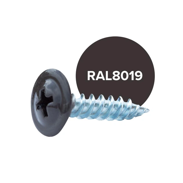 Саморіз з прес-шайбою TEEM по металу гострий RAL 8019 темно коричневий, 4,20х19 мм, 500 шт