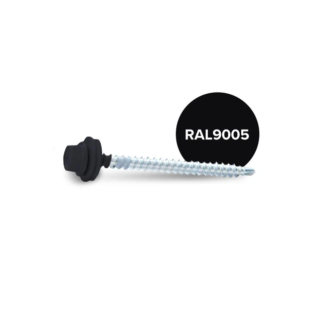 Саморіз покрівельний INFO-GLOBAL по дереву з гумовою шайбою EPDM RAL 9005 чорний, 4,80х70 мм, 100 шт