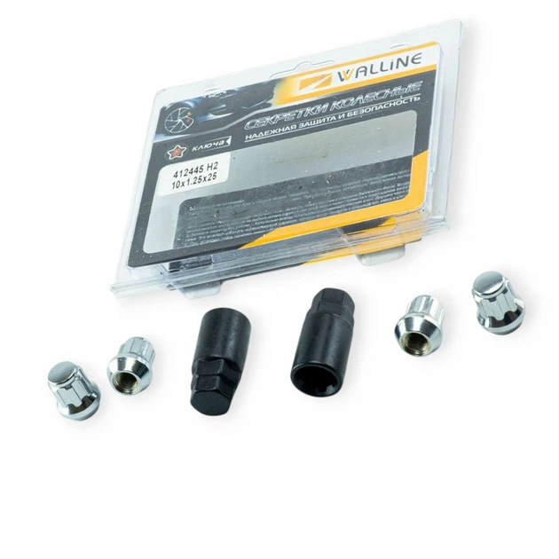 Гайка колісна хром 10х25 (ш 1,25) конус закр, секретки (2ключа)(4шт) Таврия Walline