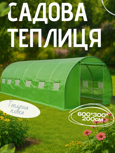 Садова теплиця армована VOLO парник для розсади 3х6х2 м з вікнами каркас з оцинкованої сталі 18 кв.м Зелений