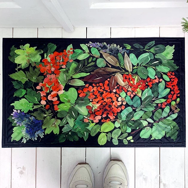 Коврик придверний з принтом Зимові квіти