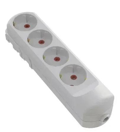 Колодка Electro House чотиримісна із заземленням з кнопкою Біла (EH-2206)