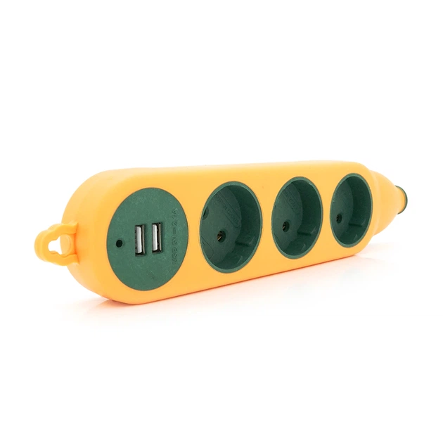 Колодка для подовжувача 3 гнізда+2USB без заземлення 16A 220V, Orange00