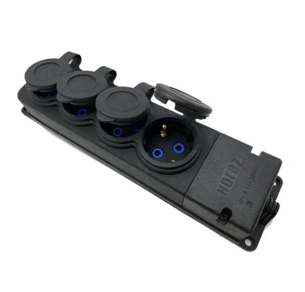 Колодка Horoz Electric 4 розетки 16А 250В каучук, чорна з кришкою та заземленням
