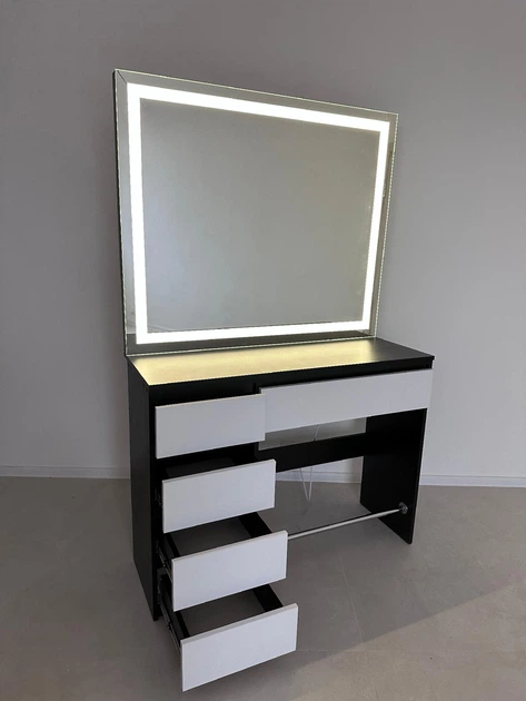 Туалетний гримерний столик для макіяжу з лед підсвічуванням 160/100 Чорний/Білий