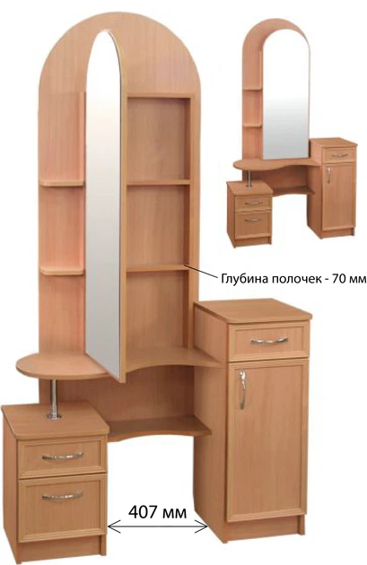 Трюмо Камелія 2 із дзеркальними дверима МДФ накладки декор МАКСІ-МЕБЛІ Бук(12527)