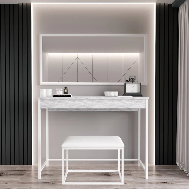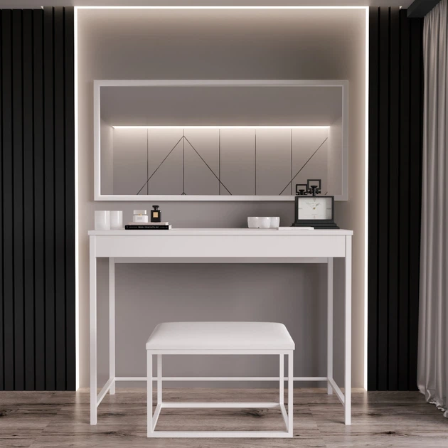 Туалетний столик з дзеркалом та банкеткою Fenster Монро Білий ДСП урбан