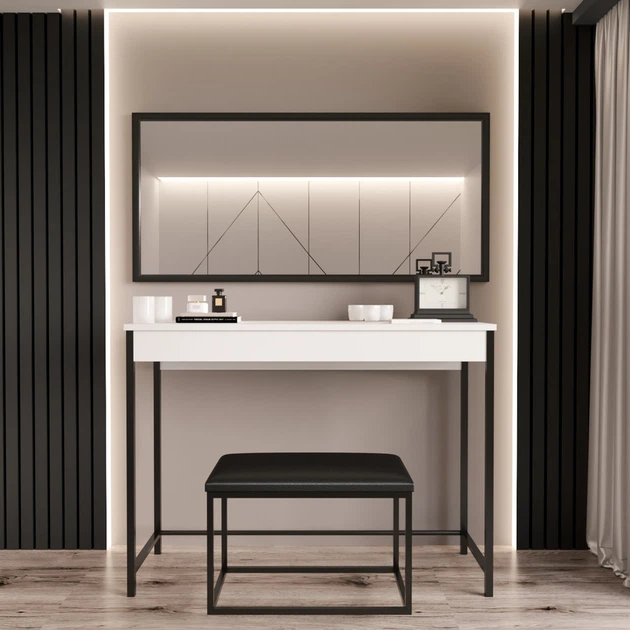 Туалетний столик з дзеркалом Fenster Сідней Чорний ДСП біле