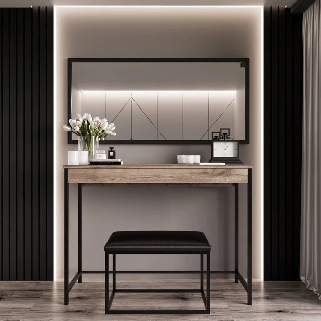 Туалетний столик з дзеркалом та банкеткою Fenster Монро Чорний ДСП дуб сонома