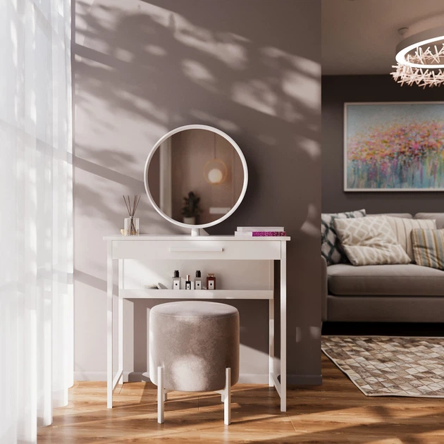 Трюмо з пуфом Fenster Прайд Білий ДСП Урбан/Тканина Лаккі-09