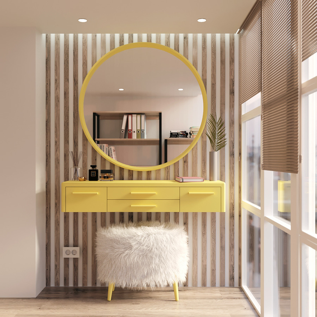 Туалетний столик із дзеркалом та пуфом Fenster Камрі Жовтий