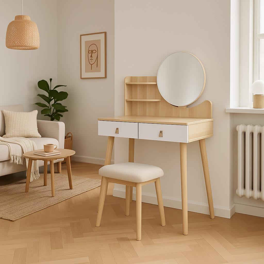 Туалетний столик Jumi Scandi з шухлядами, шкіряні ручки, світлий бук 5900410989283
