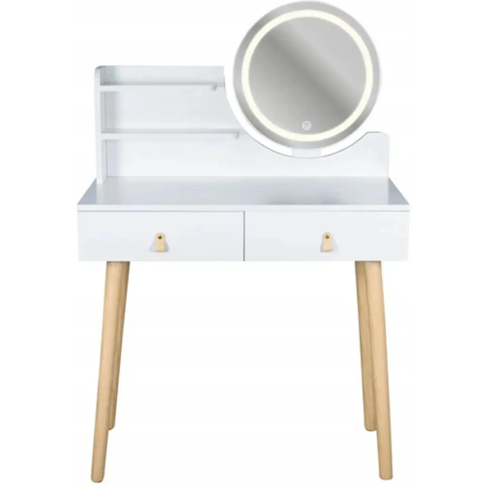 Туалетний столик Jumi Scandi LED підсвітка, з шухлядами, шкіряні ручки, білий