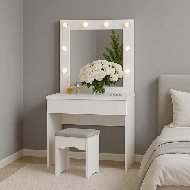 Туалетний столик з квадратним дзеркалом 1600х800х400 мм Білий Аляска
