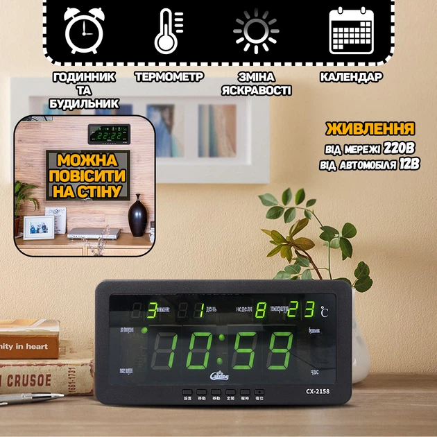 Електронні годинники настільні Caixing CX 2159 від мережі 220В і від мережі 12В (102696888TO)
