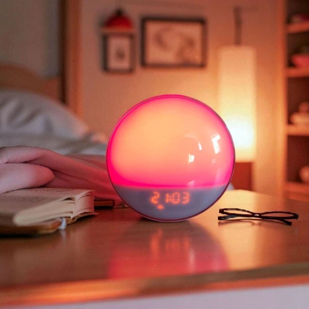 Світловий будильник-нічник з підсвічуванням Sunshine Годинник з імітація сходу сонця та FM радіо