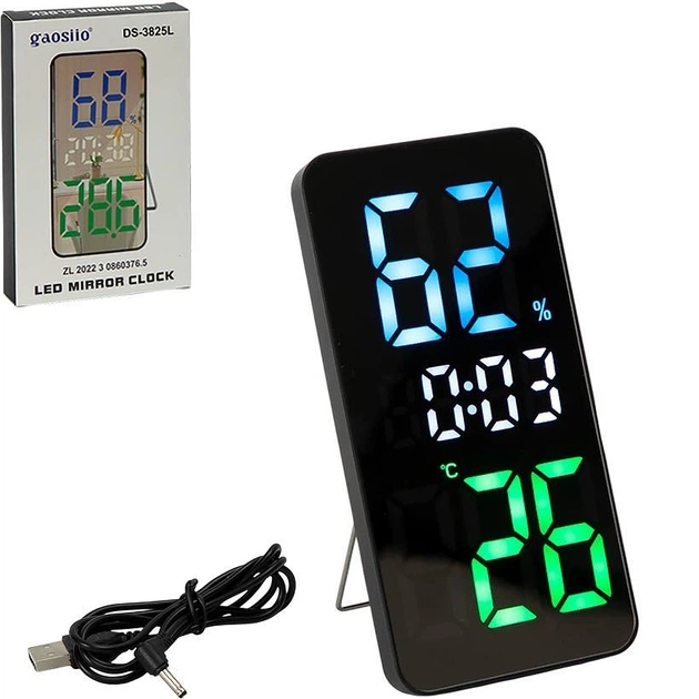 Настільний годинник будильник електронний цифровий з великим яскравим LED дисплеєм підсвіткою екрана термометром гігрометром