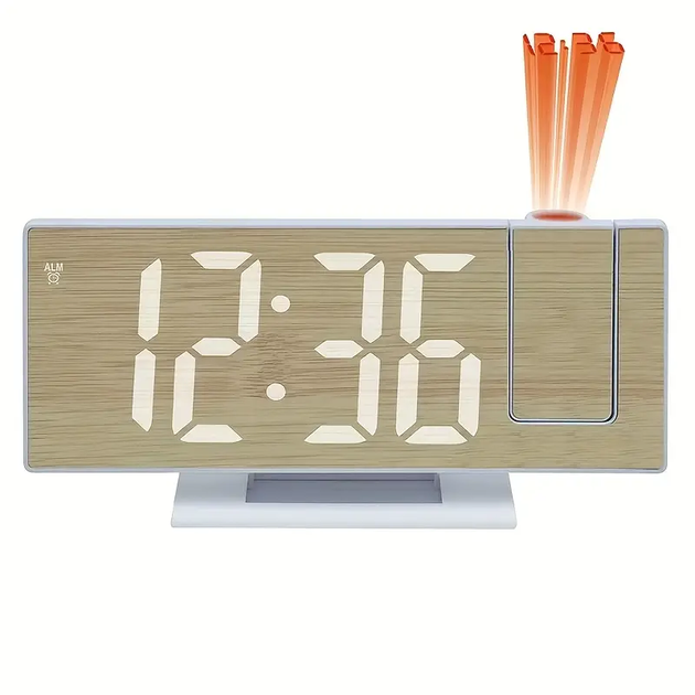 Настільний годинник будильник електронні з великими цифрами led + проекція на батарейках та від мережі, білі