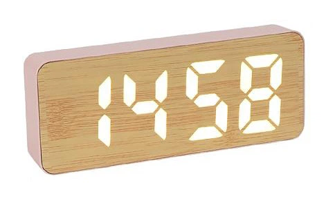 Настільний годинник будильник електронний з великими цифрами світиться led на батарейках і від мережі, рожевий