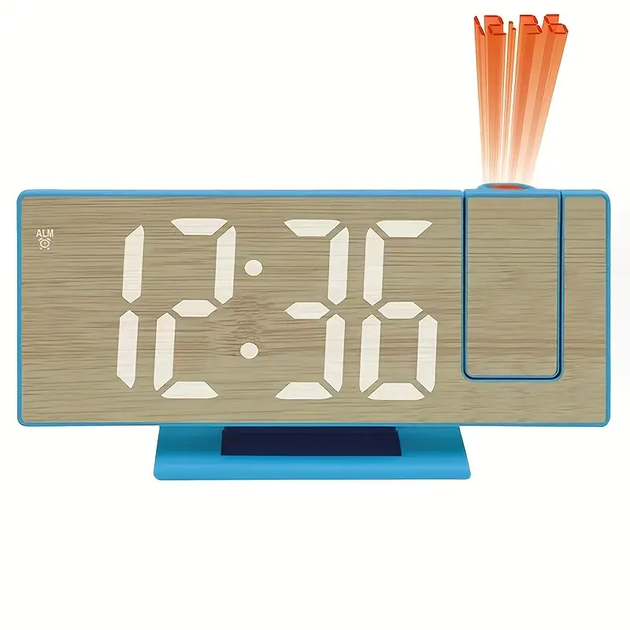 Настільний годинник будильник електронні з великими цифрами led + проекція на батарейках та від мережі, сині