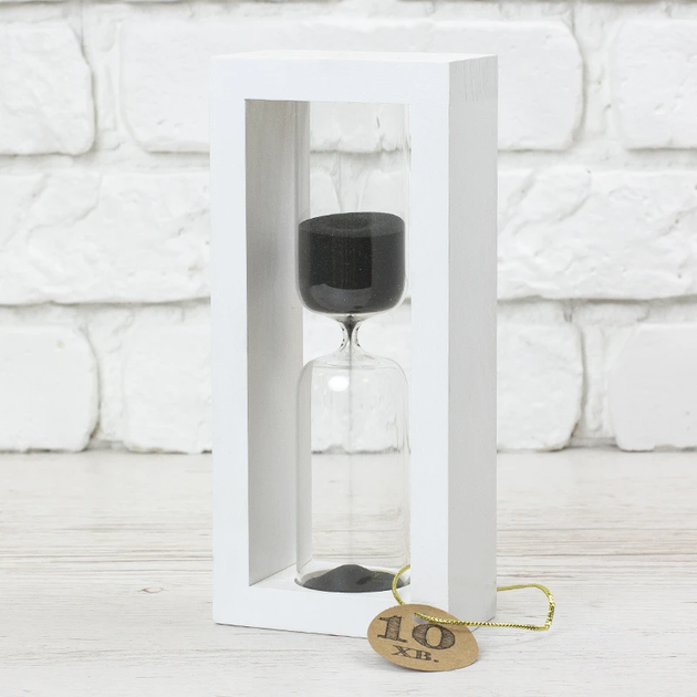 Годинник пісочний "Рамка" 4-31 на 10 хв (білий колір / чорний пісок) (СП 300613)