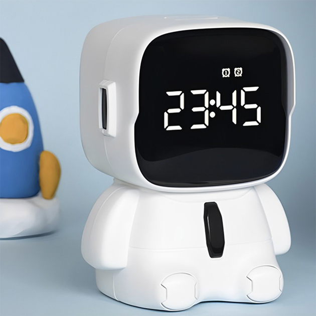 Настільний годинник будильник Robot Clock цифровий для дітей та дорослих з LED підсвічуванням та звуковим сигналом